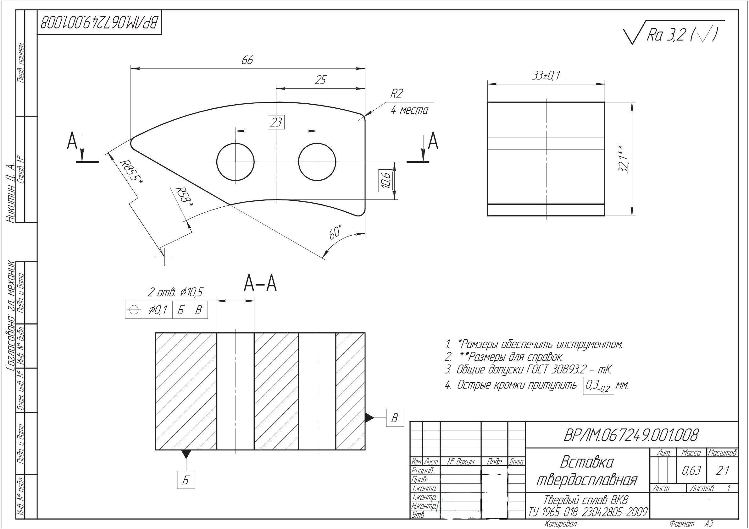 Вставка твердосплавная ВРЛМ.067249.001.008