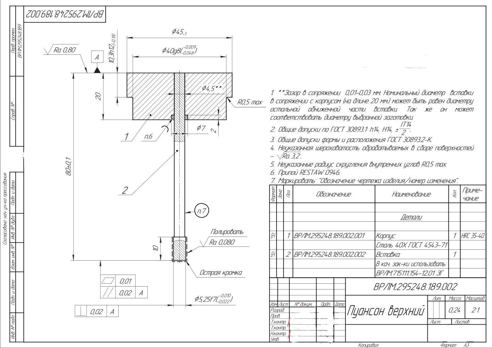 Сборочный чертеж Заготовки вставок будут отправлены давальческим материалом.